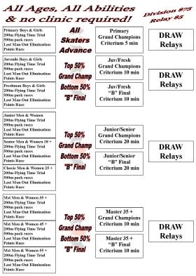 - If you are only skating relays and not division, you only pay $15 per relay. There is NO first event fee!