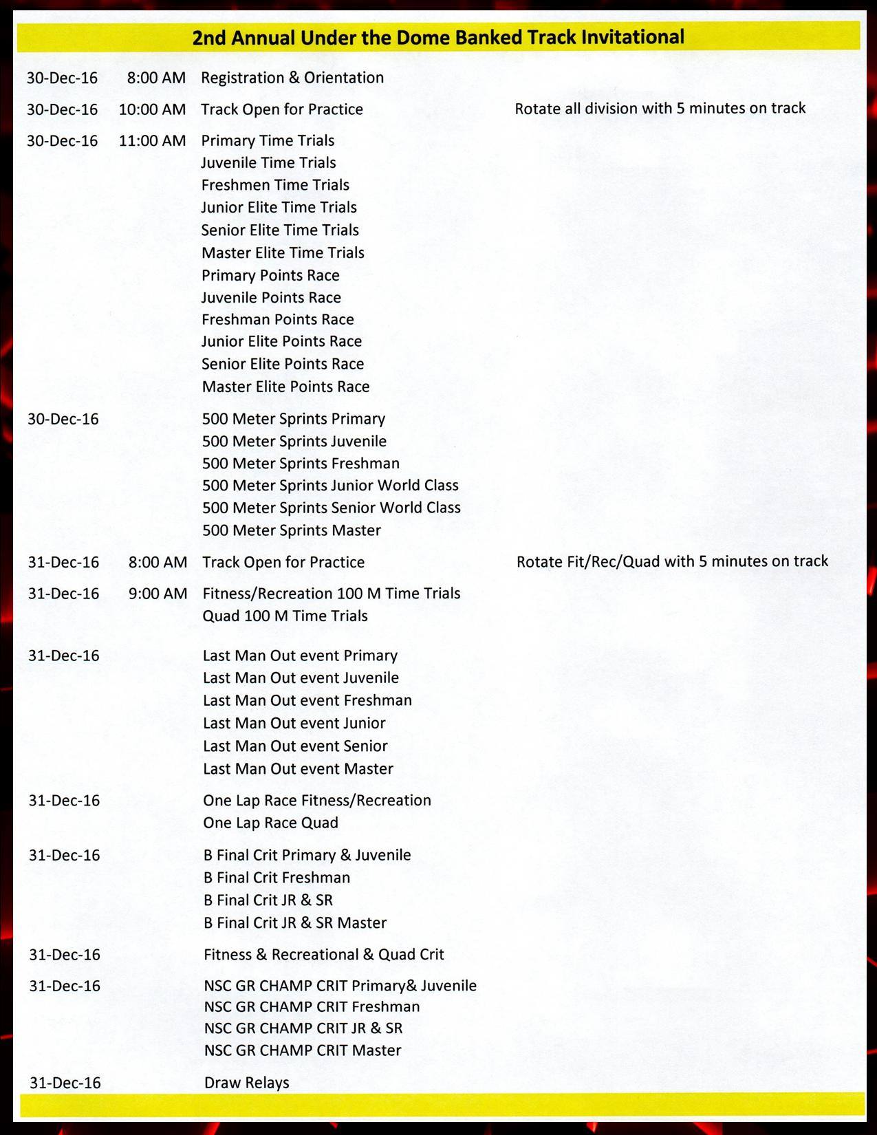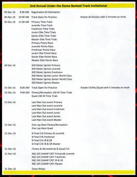 Under the Dome Banked Track Invitational & Mile High Classic Short Track Open, December 30, 2016 – January 1, 20172017 Under the Dome Banked Track Invitational