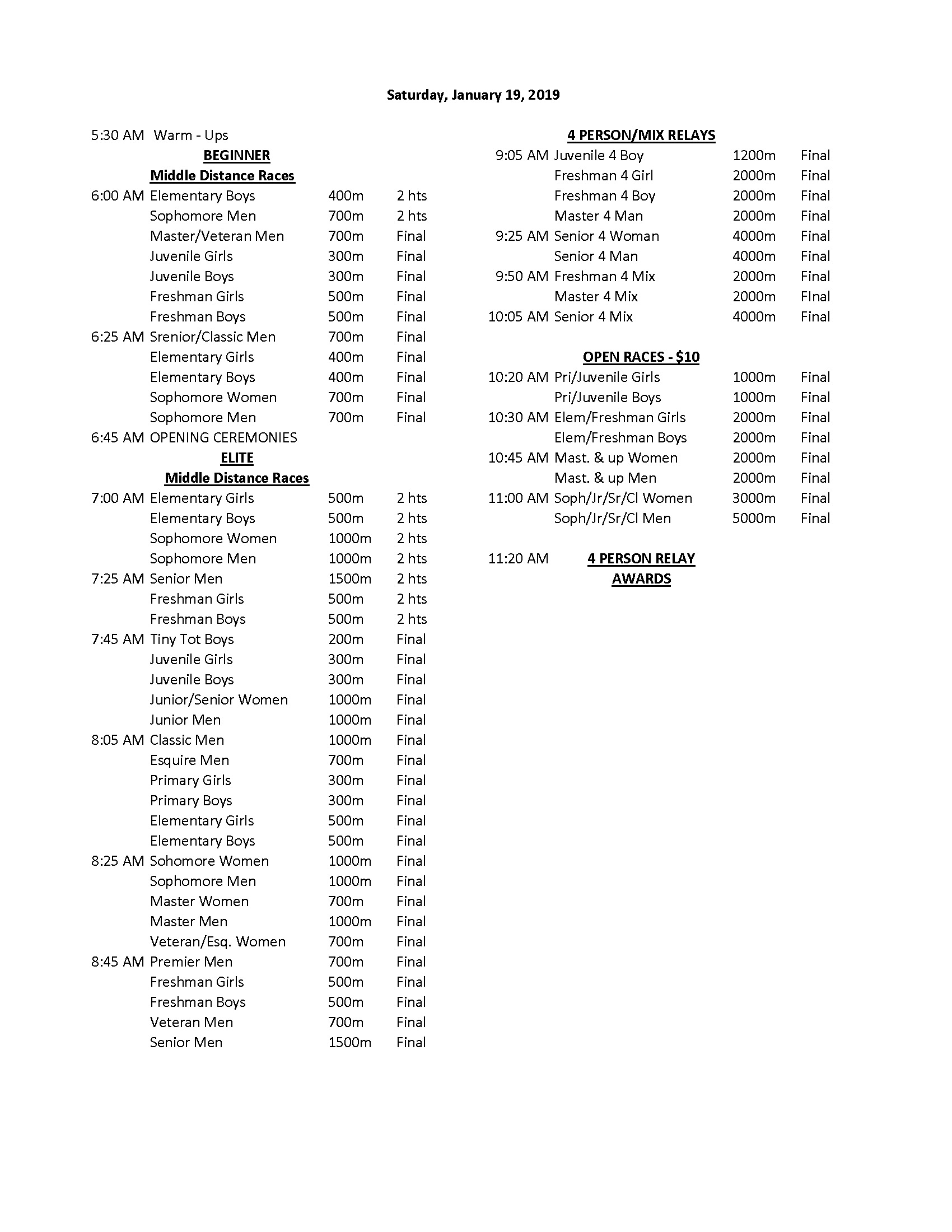 9:55am – 2 Mixed Draw Relays Heats/Finals