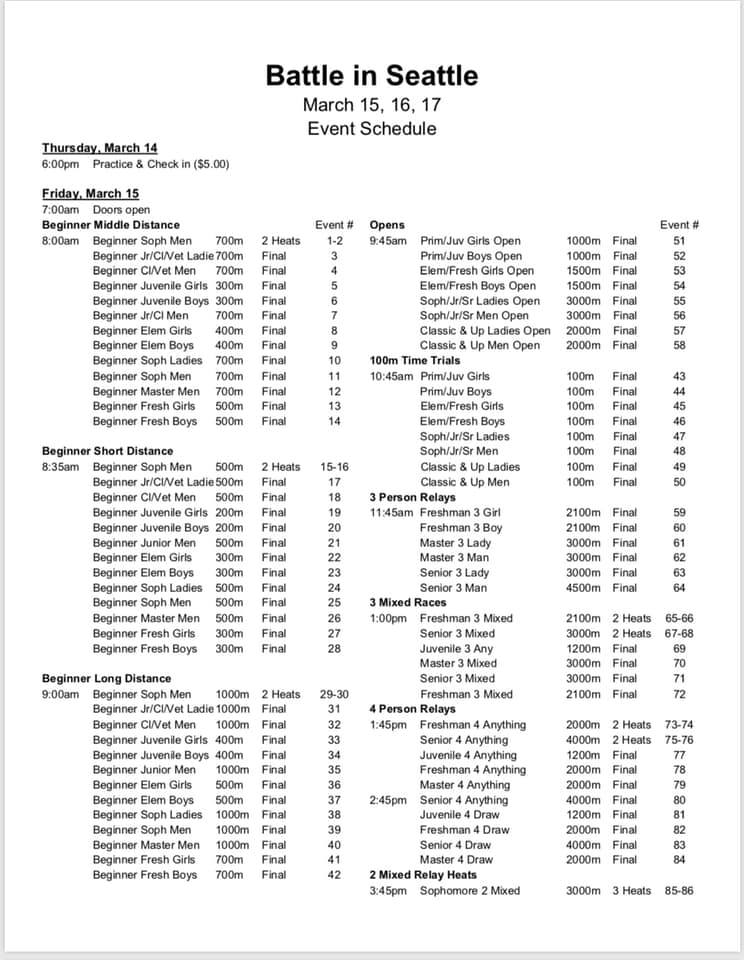- February 2-3, 2019: NSC Tac-Town Invitational (Tacoma Armory) (Results)