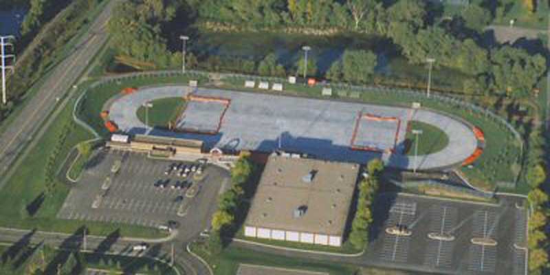 Inside the the Roseville Skating Center, the Roseville Ice Arena is a year-round ice arena used for hockey, figure skating, skating lessons and general public skating. Outside, the Guidant John Rose Minnesota OVAL has a 400 meter speed skating flat track surrounding an infield ice area used for hockey or bandy. It is the largest outdoor refrigerated skating facility in North America, featuring an 110,000 square foot slab of concrete. In the spring, summer and fall, the OVAL is also used for inline skating and hosts an aggressive skate park from early May to September.